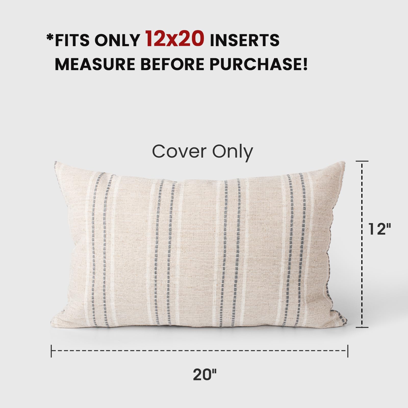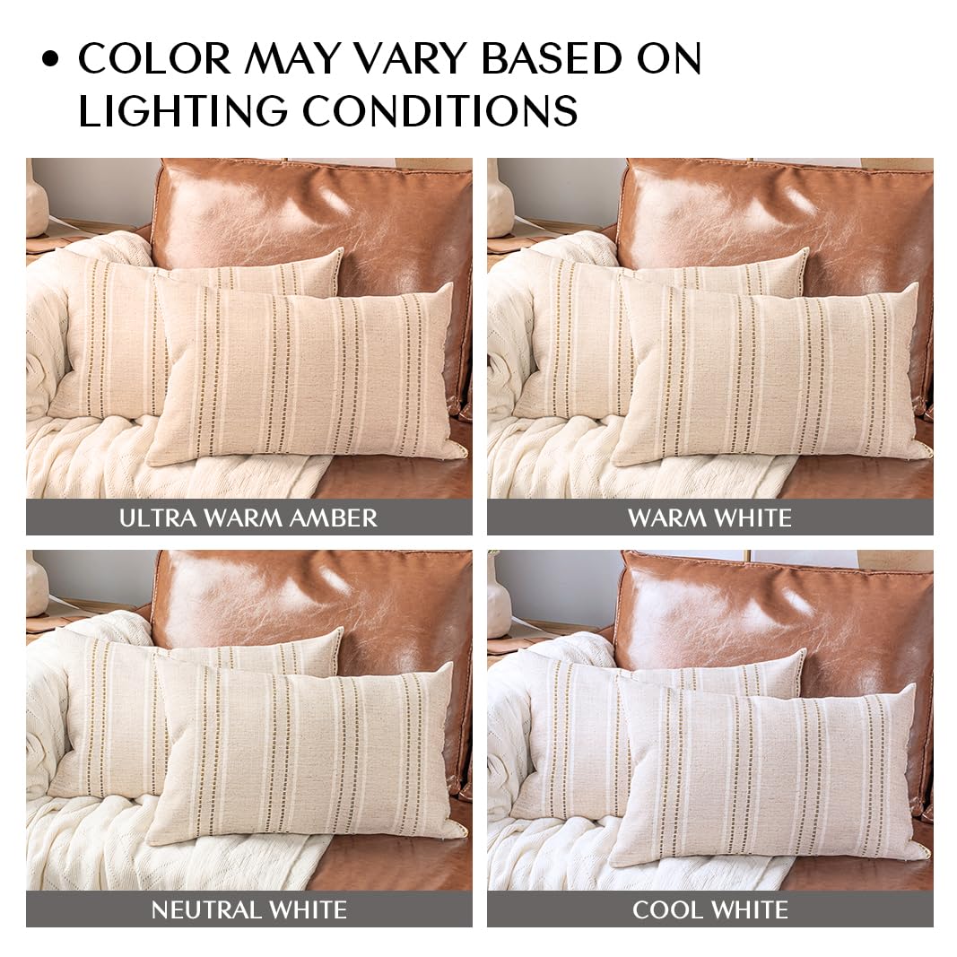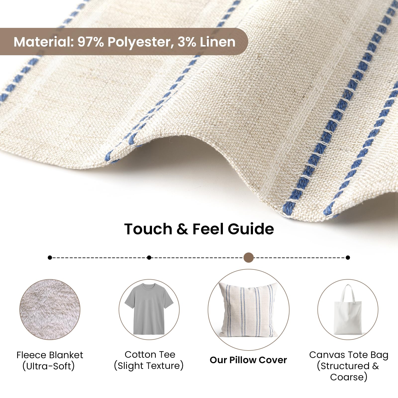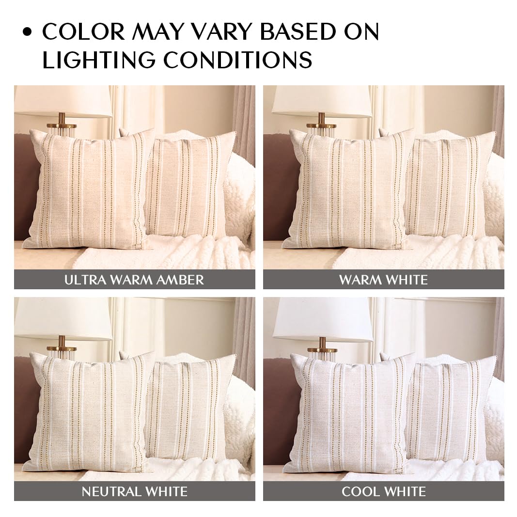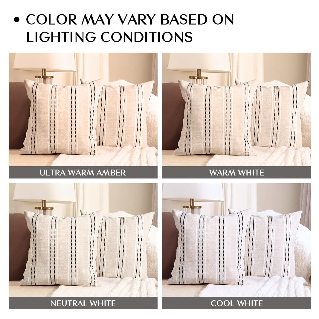 AELS 18x18 Decorative Farmhouse Linen Throw Pillow Covers, Boho Textured Pillow Case, Set of 2, Beige with White & Brown Stitch Yarn Dyed Stripe Cushion Cover for Sofa Couch Living Room (Cover ONLY)