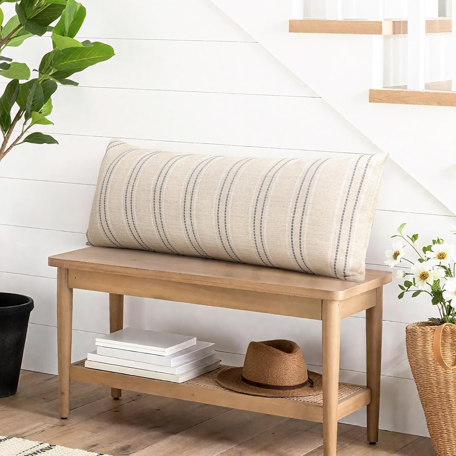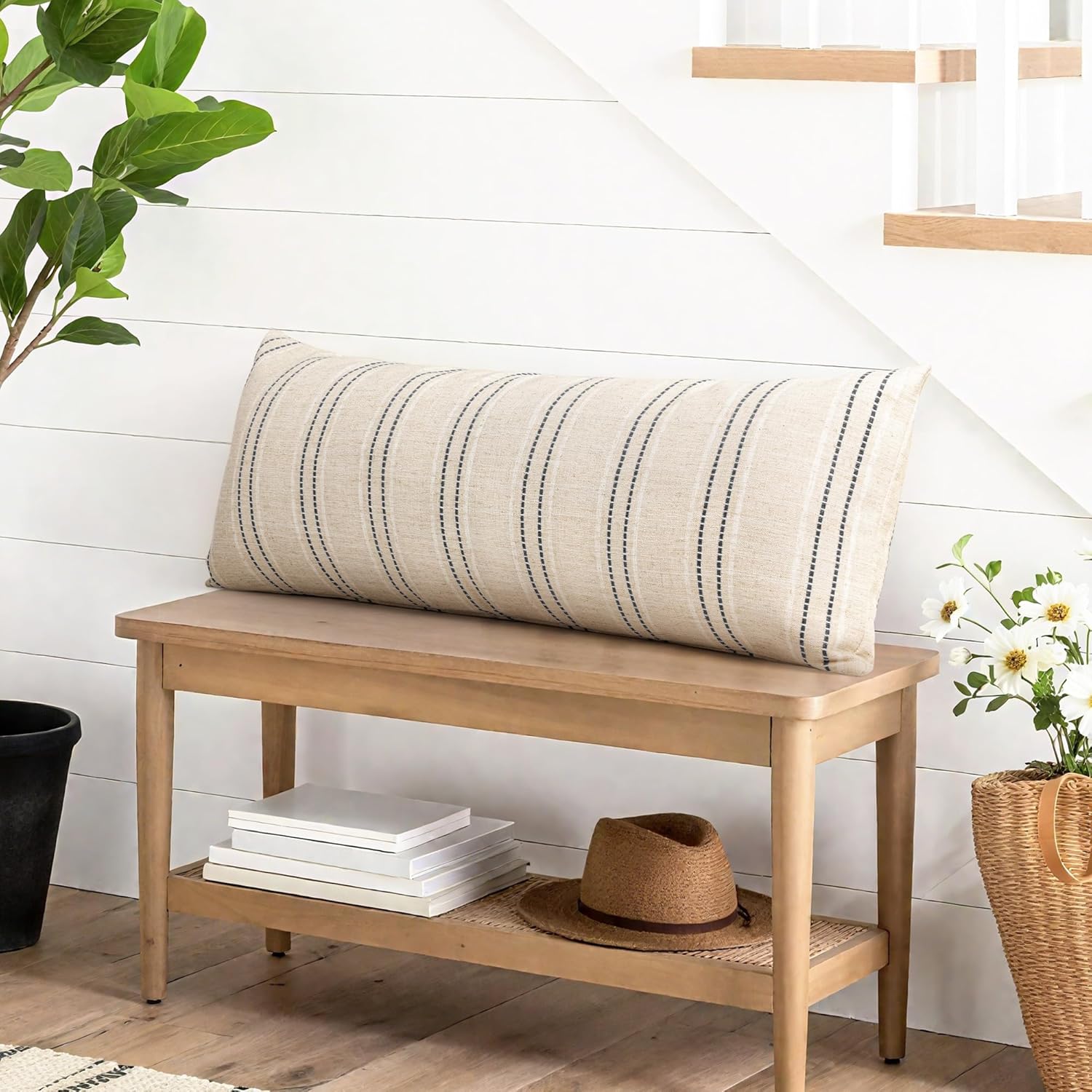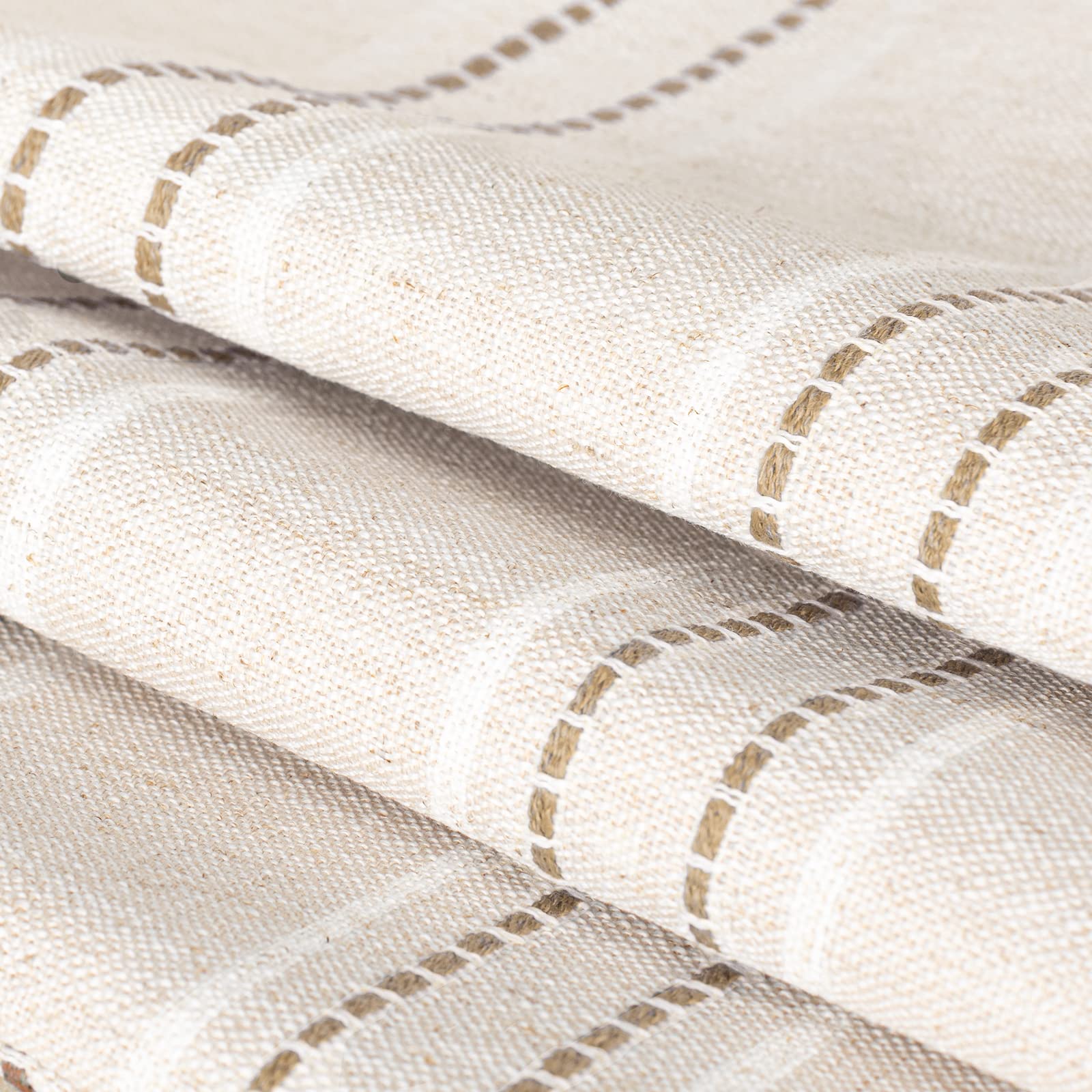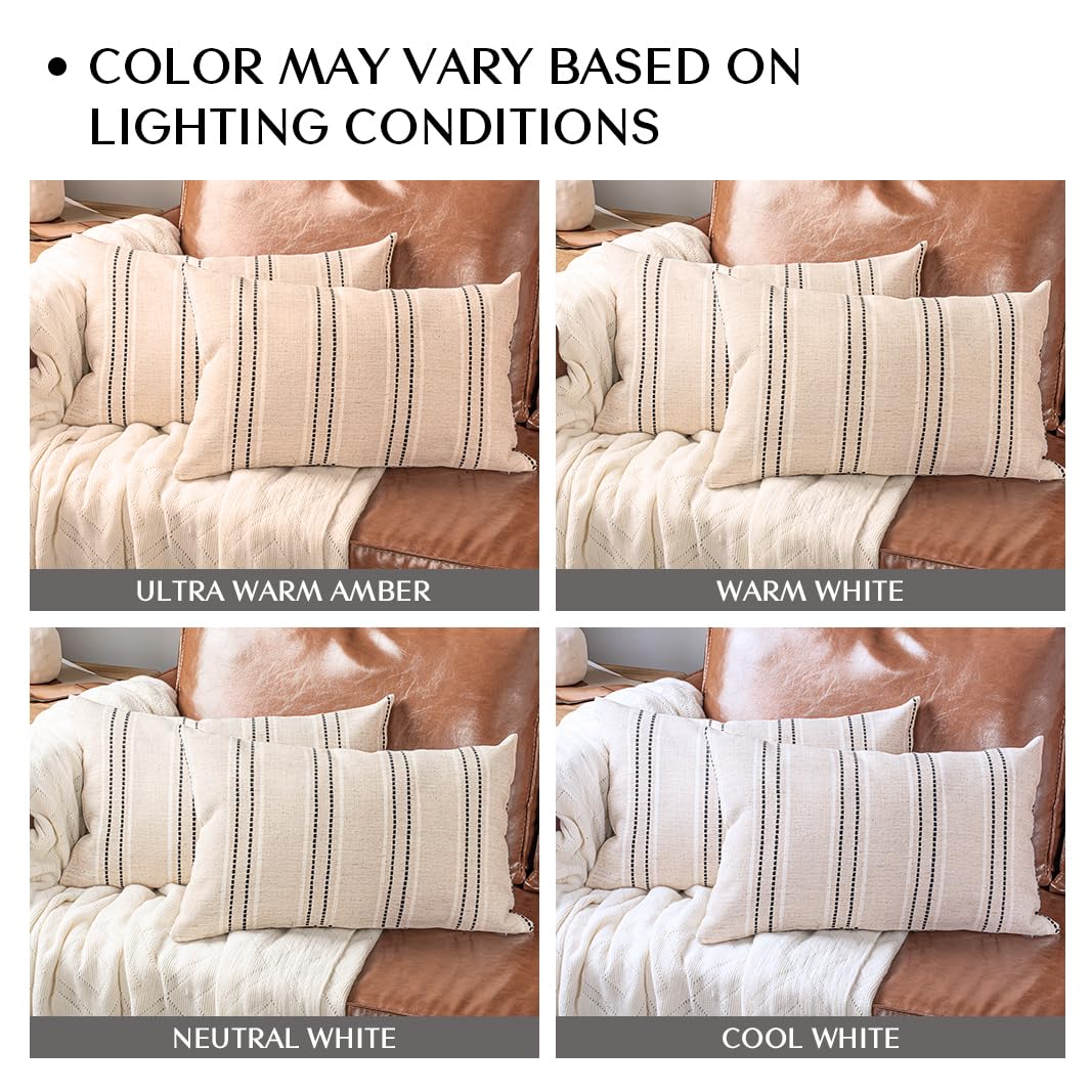 AELS 18x18 Decorative Farmhouse Linen Throw Pillow Covers, Boho Textured Pillow Case, Set of 2, Beige with White & Brown Stitch Yarn Dyed Stripe Cushion Cover for Sofa Couch Living Room (Cover ONLY)