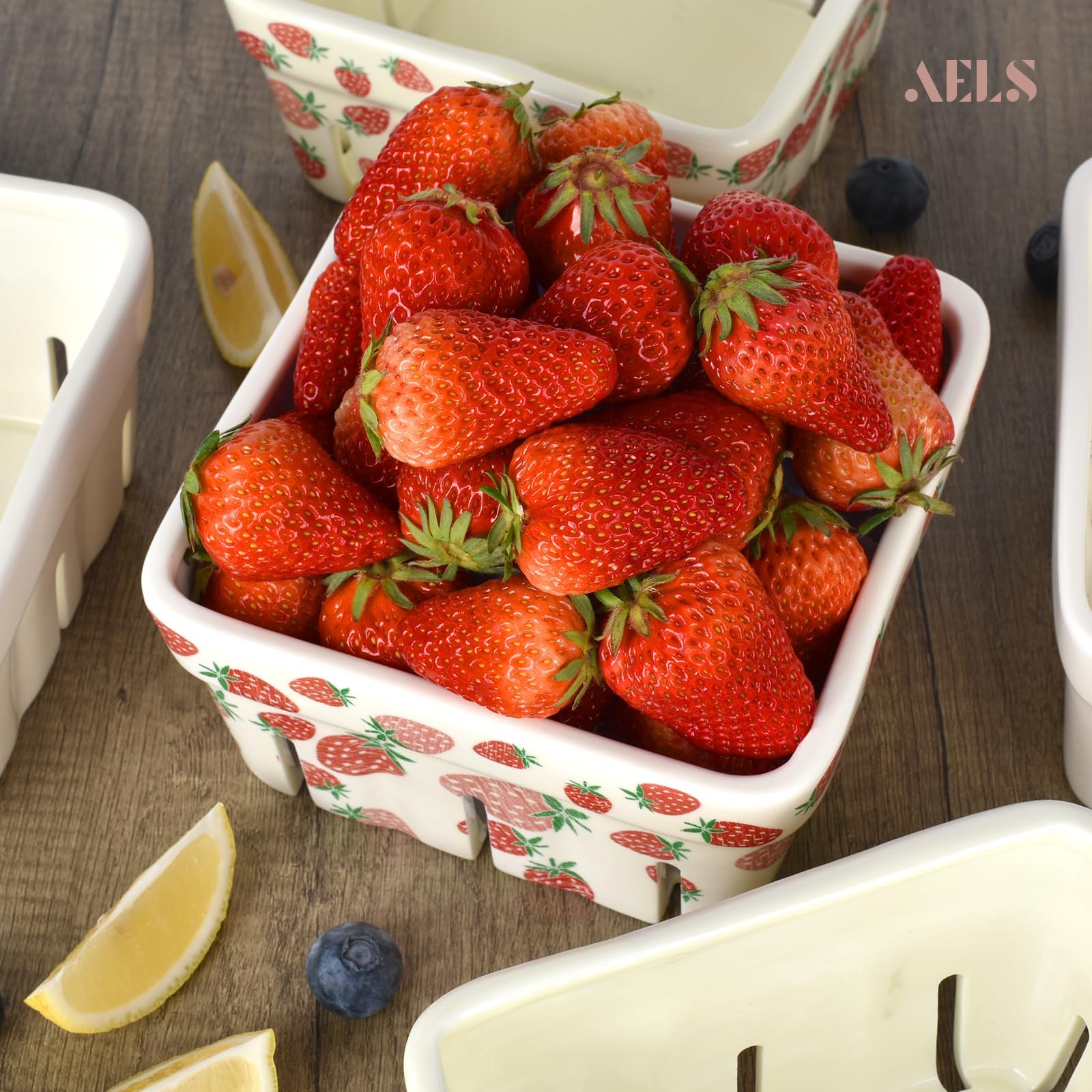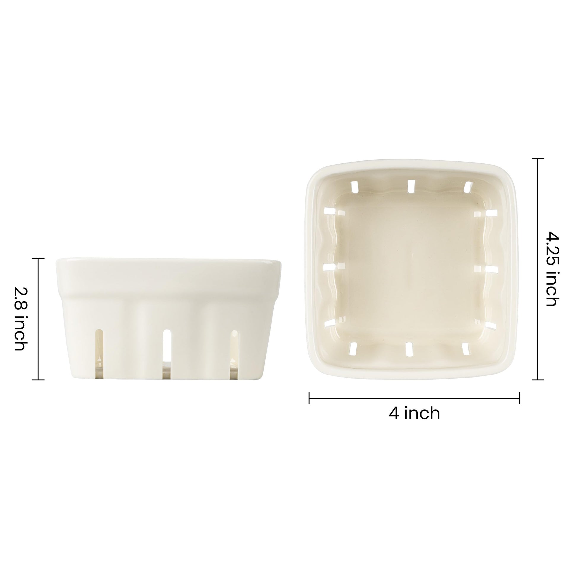 - [ Premium Material ] Made of high-quality stoneware - strong, dense and durable ceramic. They’re oven, dishwasher and microwave safe. Set of 2, about 5.9 x 5.9 x 3.1 inches. The berry containers have slotted sides for ventilation to help preserve the lifespan of fresh produce at the farmer’s market, roadside fruit stand, or local grocery store.