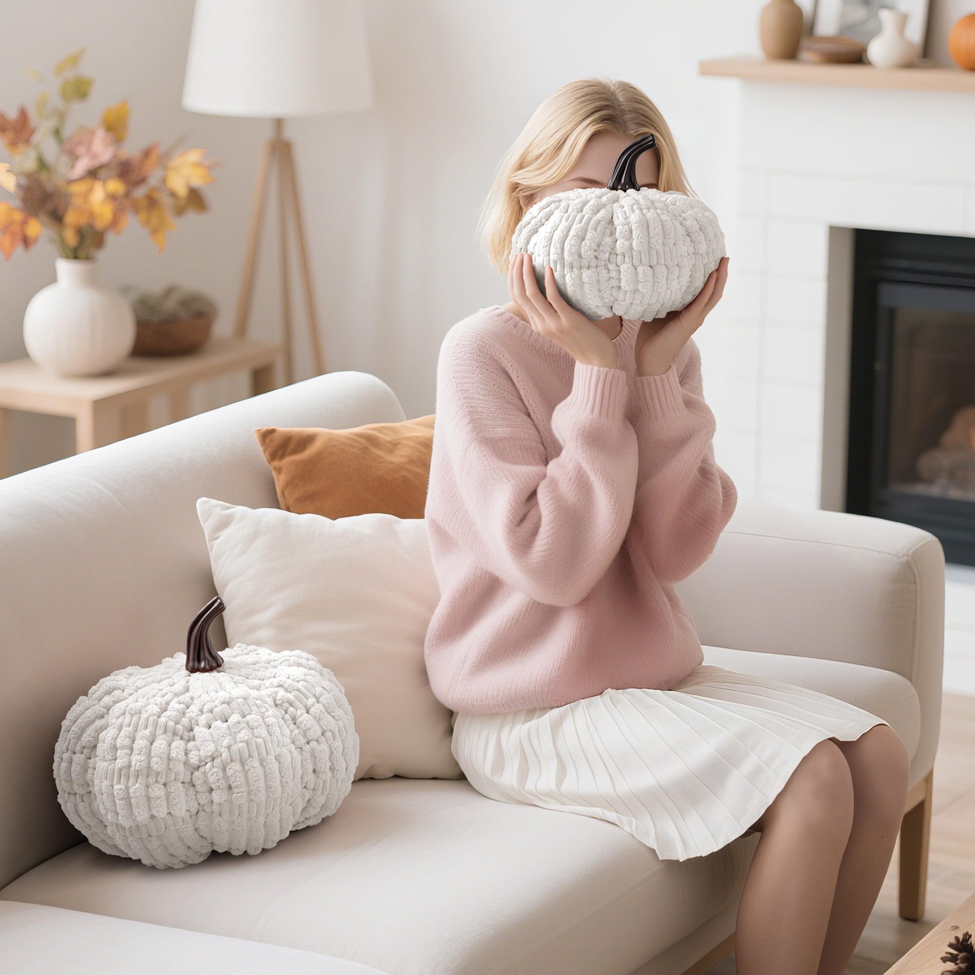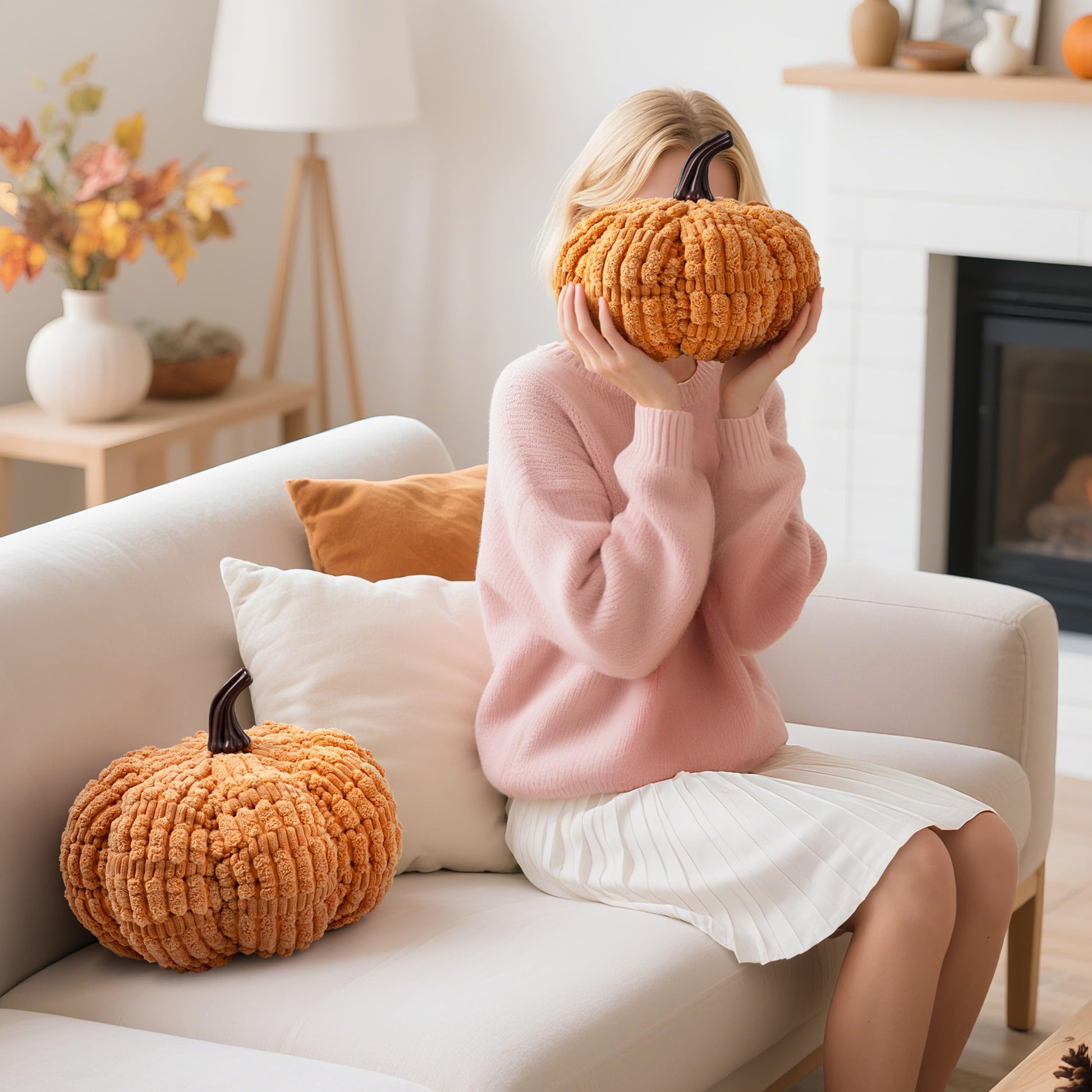 - Adorable Pumpkin-shaped Pillows: Our pumpkin-shaped pillows are perfect for fall—adding fun, festive decor. Each handmade pillow features a realistic plastic stem, enhancing its pumpkin charm. Stylish and functional, these are ideal Halloween and autumn-themed additions to any space.
