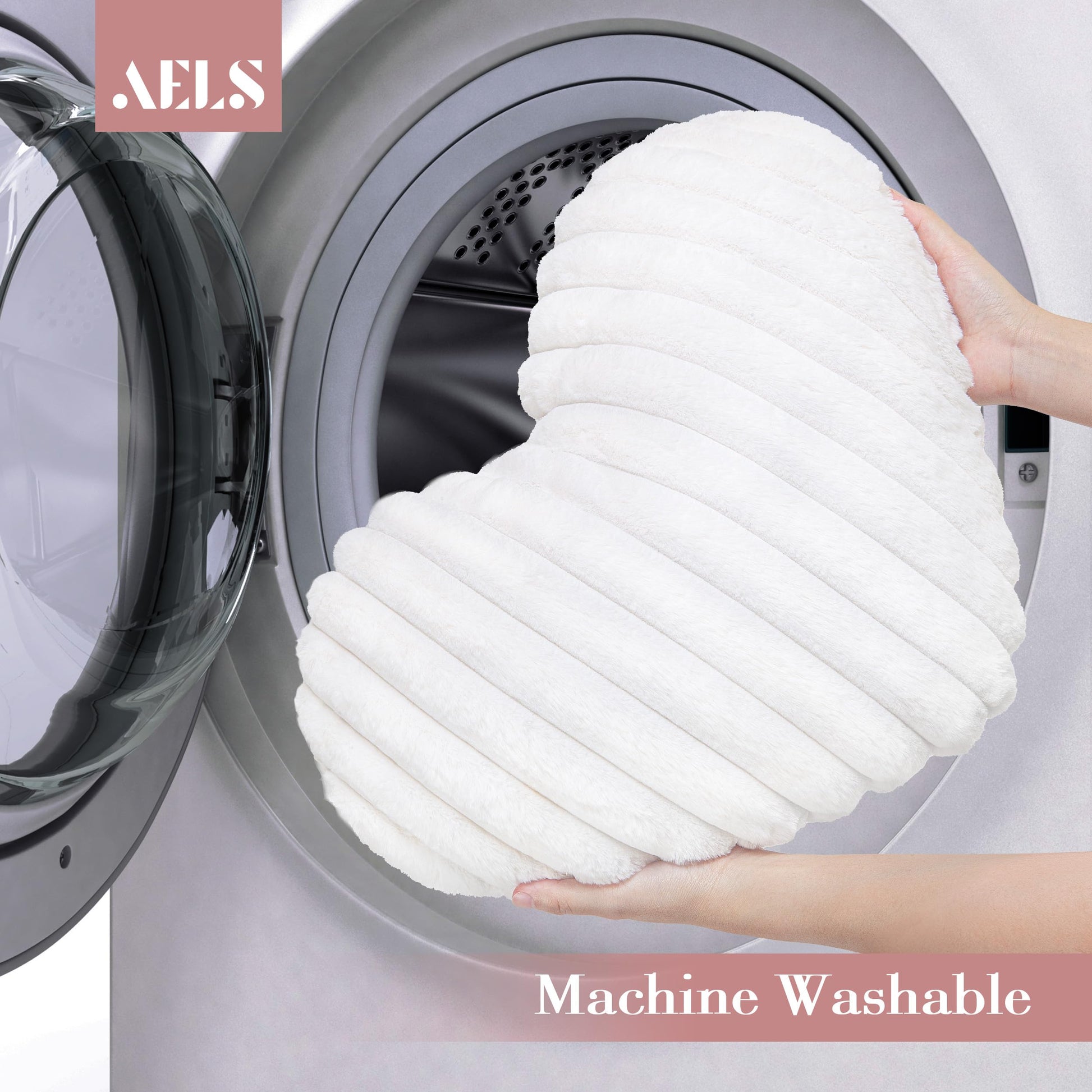 AELS Heart Shaped Pillow, 20 Inches Heart Decorative Throw Pillows, Faux Fur Love Cute Pillows, Valentines Day Decorations, Wedding Decor, Living Room Bedroom Nursery Decor, White