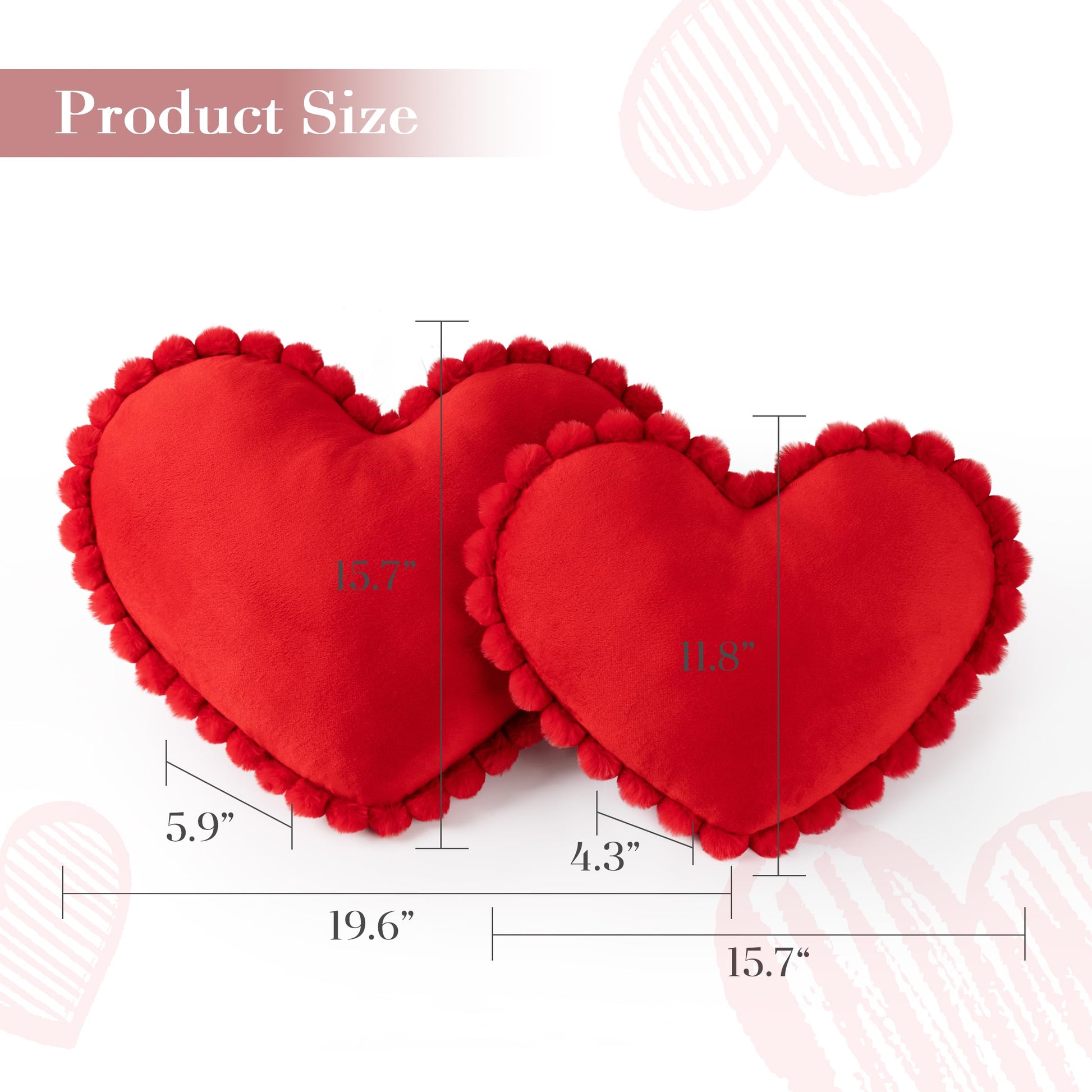 - [ Stylish Heart Design ] This throw pillow is in the shape of heart and is suitable for many scenarios and applications. The size of this product is approx. 19.6 inches tall and 14 inches wide when flat. Each pillow is completely handmade and may vary in size slightly. This throw pillow serves both an aesthetic and functional purpose.